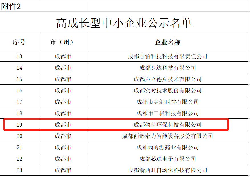 12月24日,由四川省經(jīng)濟(jì)和信息化廳組織的2020年度重點(diǎn)中小企業(yè)申報(bào)工作評(píng)選結(jié)束,成都碩特環(huán)??萍加邢薰就ㄟ^(guò)復(fù)核,進(jìn)入高成長(zhǎng)型中小企業(yè)公示名單。