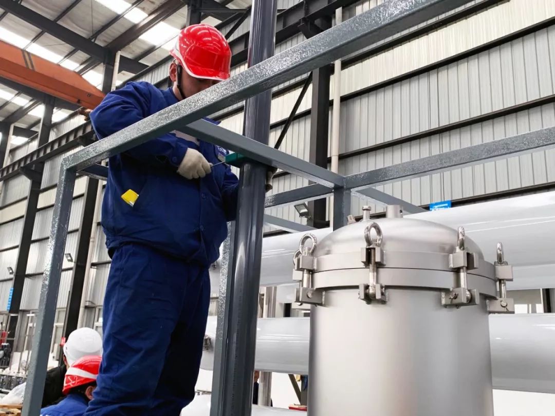 2.其余三套膜柱單元完成底架單元、膜柱支架及產(chǎn)水主管路安裝,高壓泵電機(jī)裝配兩臺(tái),完成一臺(tái)循環(huán)泵及相應(yīng)高壓管路裝配。