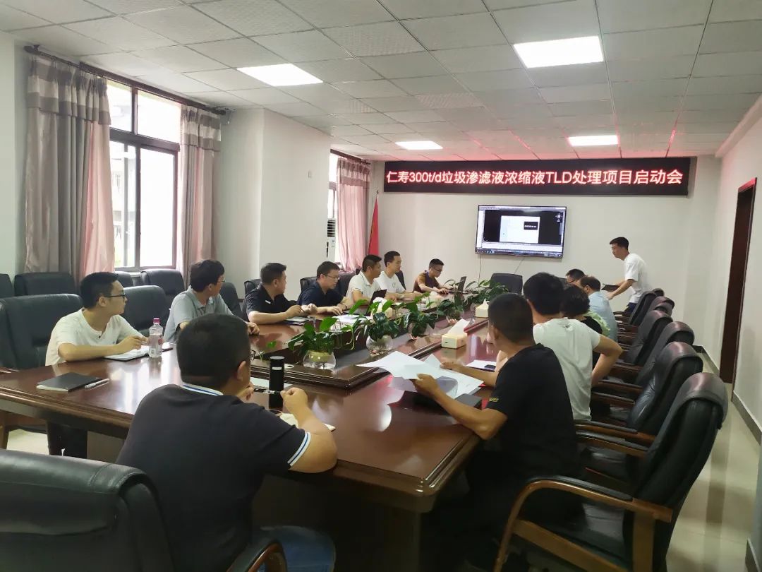 7月7日,碩特環(huán)保副總經(jīng)理黃興俊一行與四川仁壽鑫龍水務(wù)建設(shè)有限公司董事長朱云華及相關(guān)領(lǐng)導(dǎo)在仁壽鑫龍水務(wù)建設(shè)有限公司會議室召開了“仁壽300t/d垃圾滲濾液濃縮液TLD處理項目啟動會”,會議就項目的人員分工、前期準(zhǔn)備以及注意事項進行了安排部署。