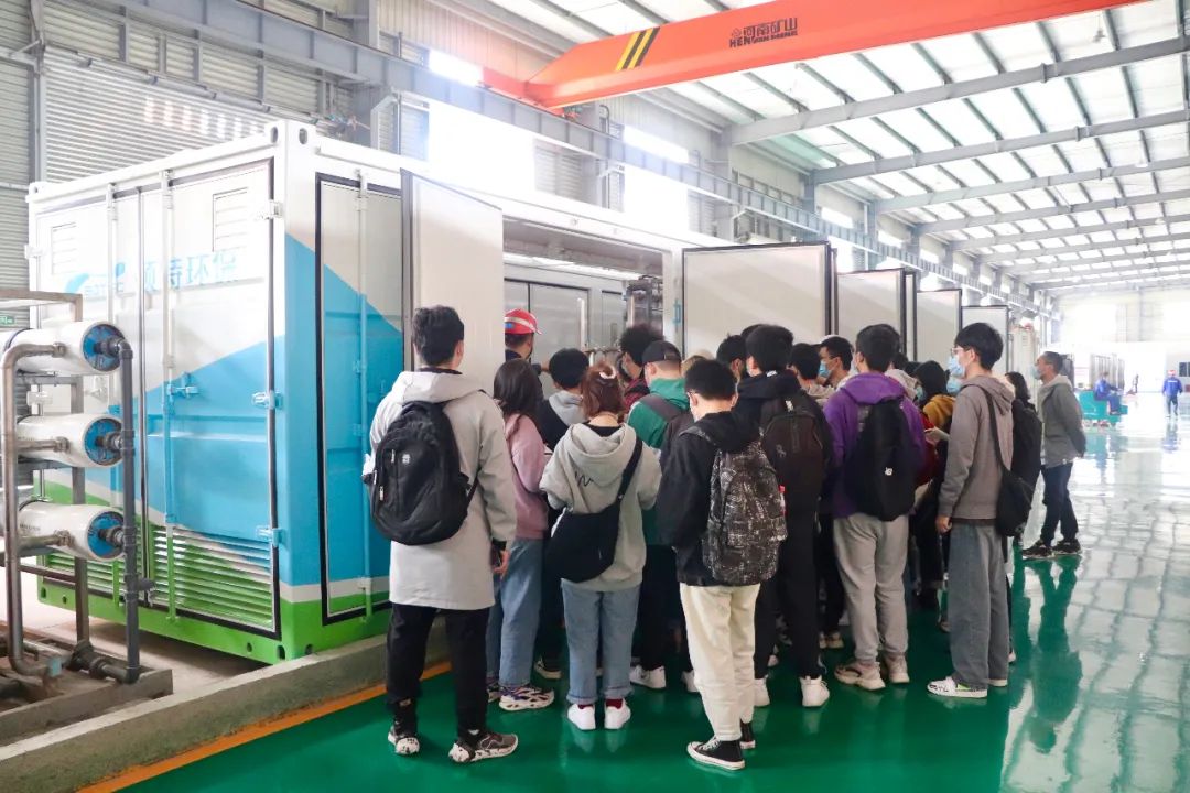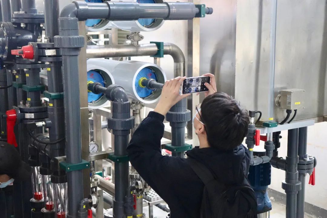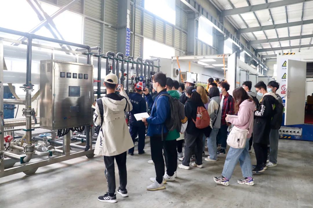 期間,副廠長陳虎和車間主任伍文帶領(lǐng)學(xué)生參觀工廠,了解公司情況,給學(xué)生詳細(xì)介紹公司設(shè)備、技術(shù)及設(shè)備工作原理。而后學(xué)生們隨車到達(dá)仁壽濃縮液全量處理項目現(xiàn)場,仁壽項目采用碩特環(huán)保自主研發(fā)的滲濾液濃縮液非蒸發(fā)全量處理工藝,運維負(fù)責(zé)人帶領(lǐng)學(xué)生們參觀感受整個項目的全流程處理工藝,讓學(xué)生們對廢水處理工藝及處理設(shè)備有更全面了解。