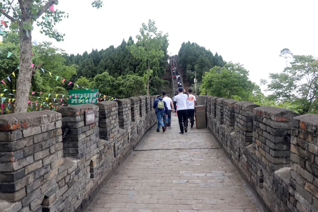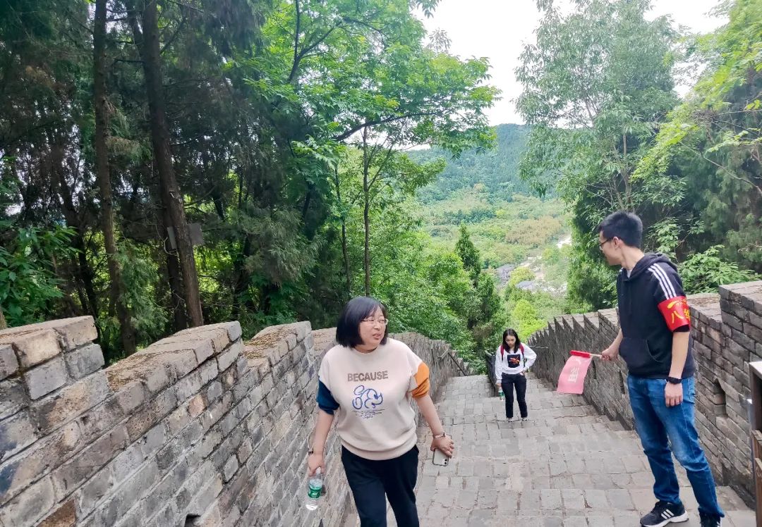 金龍長(zhǎng)城全長(zhǎng)約1680米,5個(gè)烽火臺(tái),伏臥九泉山,從金龍湖景區(qū)大門(mén)向山脊延伸,到金龍寺,是中國(guó)目前規(guī)模最大的模擬長(zhǎng)城。拾階而上,員工們呼吸著新鮮的空氣,感受著大自然的旖旎風(fēng)光,在歡聲笑語(yǔ)中向山頂一路攀登。層層疊疊的大山之中,一條長(zhǎng)城之路隨著群山的起伏,蜿蜒而過(guò),直通山頂,部分平時(shí)缺乏鍛煉的同事不久便氣喘吁吁,登山健將主動(dòng)代背行囊,鼓勵(lì)的言語(yǔ)讓疲憊的同事再次打起精神,邁開(kāi)腳步。有些同事一鼓作氣,按照活動(dòng)規(guī)則,角逐前三,到達(dá)登峰,與金龍寺合影留念,成為同事們前行的標(biāo)桿和榜樣。稍作休憩后,又有一些同事繼續(xù)出發(fā),發(fā)揚(yáng)團(tuán)隊(duì)精神,挑戰(zhàn)自我,問(wèn)鼎金龍長(zhǎng)城,一覽山間風(fēng)景。