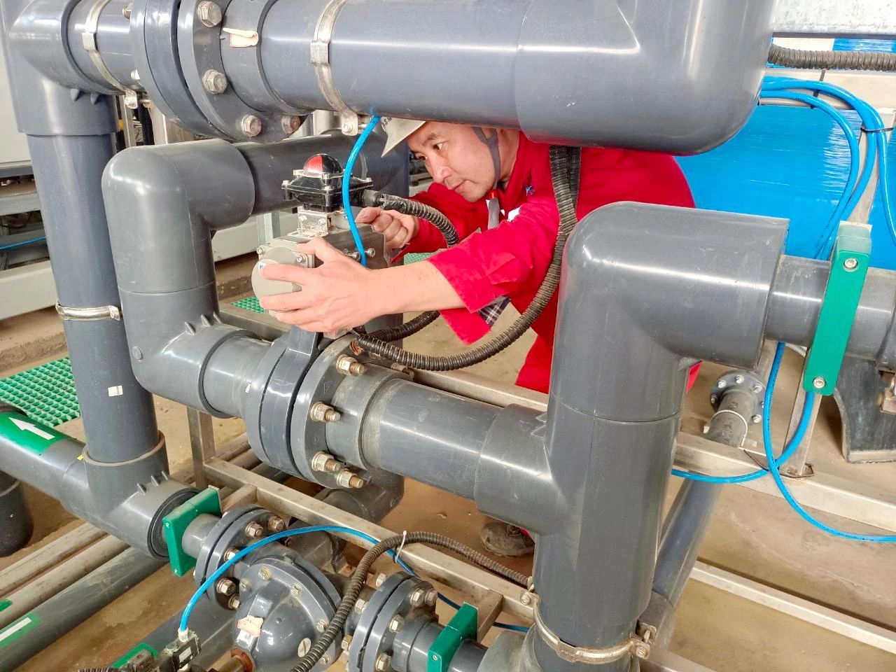 譚前師為了把工作干好迎難而上,工作期間氣溫零下20~30℃,2020年12月20日,當(dāng)晚由于溫度過(guò)低造成原水泵進(jìn)水口結(jié)冰,為了不耽誤生產(chǎn),他帶領(lǐng)兄弟們堅(jiān)持4小時(shí)不斷用熱水將原水泵澆通,消除故障;項(xiàng)目人員緊缺,譚前師同時(shí)兼任叉車(chē)司機(jī),每天水處理系統(tǒng)產(chǎn)生的近8噸泥漿他都要在夜晚全部卸出。