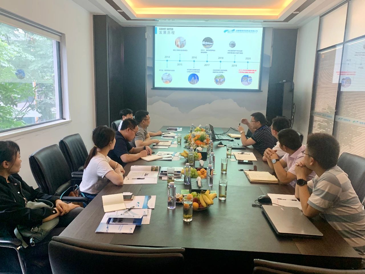 6月9日,成都環(huán)境集團再生能源公司總經(jīng)理蘭彭華、生產(chǎn)管理部長趙雙全、滲濾液廠長文靖發(fā)、技術(shù)部和滲濾液廠技術(shù)專家一行到碩特環(huán)??疾旖涣鳌4T特環(huán)保董事長倪金元、副總經(jīng)理黃興俊、技術(shù)研發(fā)副總監(jiān)王亮、胡君杰參與交流接待。