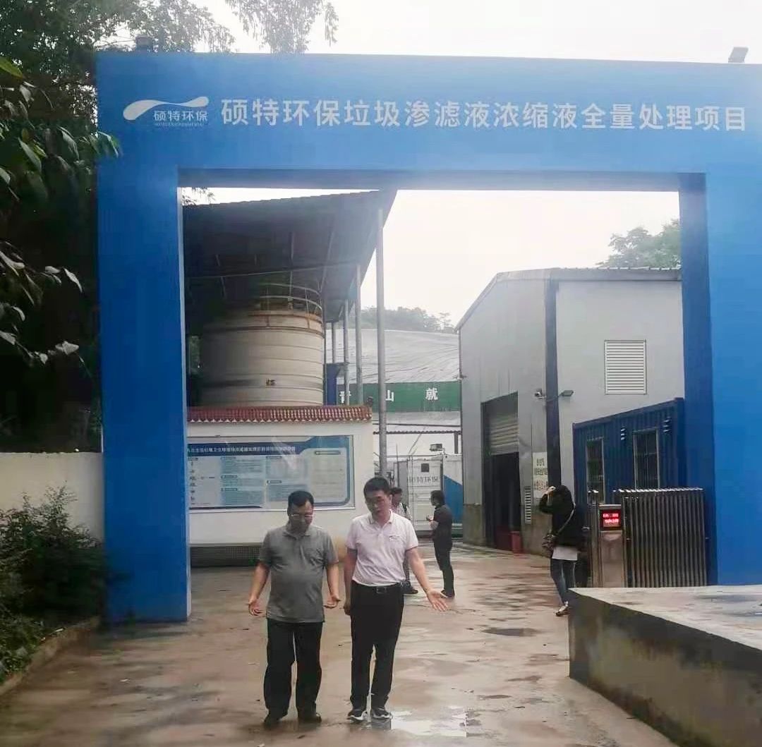 交流結(jié)束后,雙方驅(qū)車前往碩特環(huán)保擁有自主知識產(chǎn)權(quán)的全國首個濃縮液非蒸發(fā)工藝全量處置項目——仁壽垃圾滲濾液濃縮液全量處置項目進行考察。倪總和黃總親自引領蘭總一行參觀并對項目進行全面細致的介紹,領導專家們興趣盎然,不時對各工藝點和工藝環(huán)節(jié)進行交流發(fā)問,并提出獨到的見解,充分展現(xiàn)了環(huán)保專家的學識和風范。項目現(xiàn)場人員表示,此次交流讓他們受益匪淺,感受頗深。