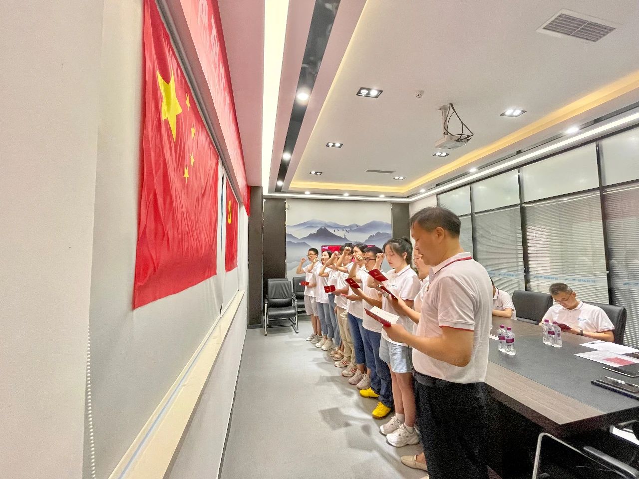 在總經(jīng)理助理崔宏華的帶領(lǐng)下,全體黨員緊握拳頭,激情昂揚(yáng),一起重溫入黨誓詞,表達(dá)緊跟黨走的堅(jiān)定信仰。全體黨員決心以優(yōu)良的思想素質(zhì),樹立“敢為人先、永爭一流”的示范榜樣。