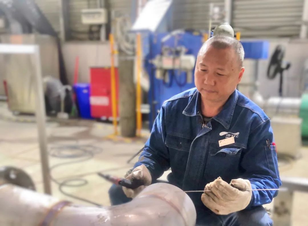 八月,正值酷暑,公司焊接部門接到焊接計劃后,繆家彬一直忙碌在變形量控制的方案中,通過多次嘗試、總結(jié)、分析發(fā)現(xiàn)焊縫焊接問題后,及時采取措施,既能夠保證管路焊接焊透、焊縫雙面成型,又能保證總體尺寸誤差在1mm以內(nèi)。九月,高壓管路正式投產(chǎn),管路出現(xiàn)多路分叉及多種角度的難題,繆家彬就地取材,利用邊角余料,制作出適用各種管路的焊接工裝,并申報專利。目前項目按計劃已完成NF和RO管路焊接任務(wù),UF管路正在焊接制作中,力爭保質(zhì)保量按時完成項目交付任務(wù)。