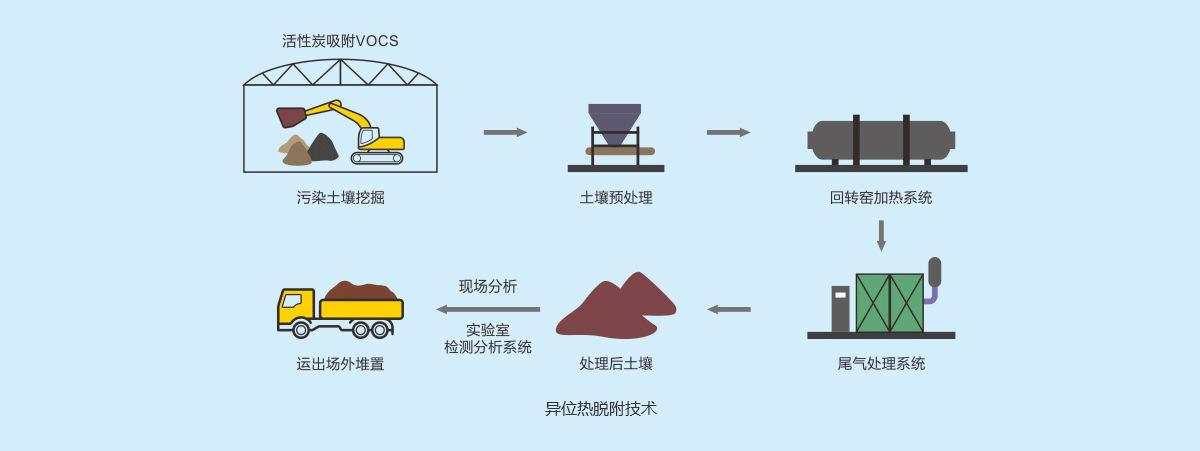技術(shù)特點:可以徹底去除土壤中的污染物,熱脫附處理設備集成化程度高,安裝調(diào)試周期較原位加熱處理技術(shù)周期短。